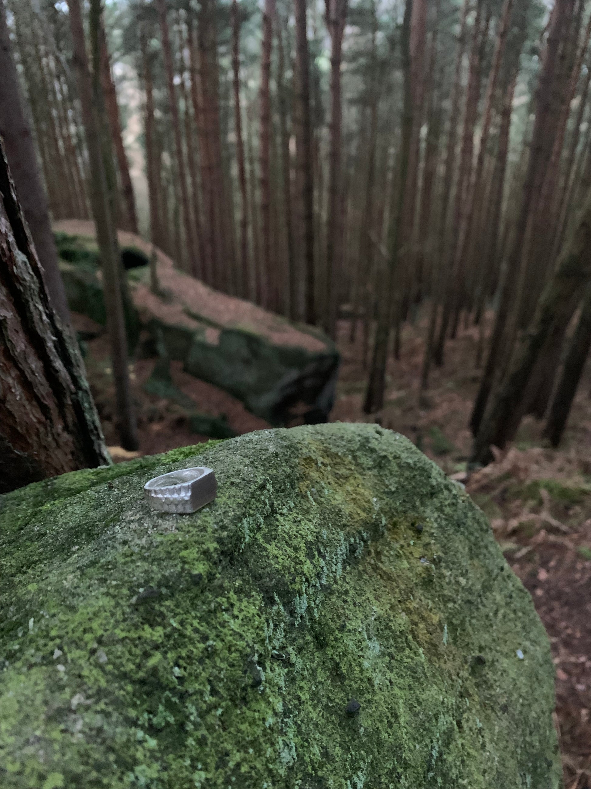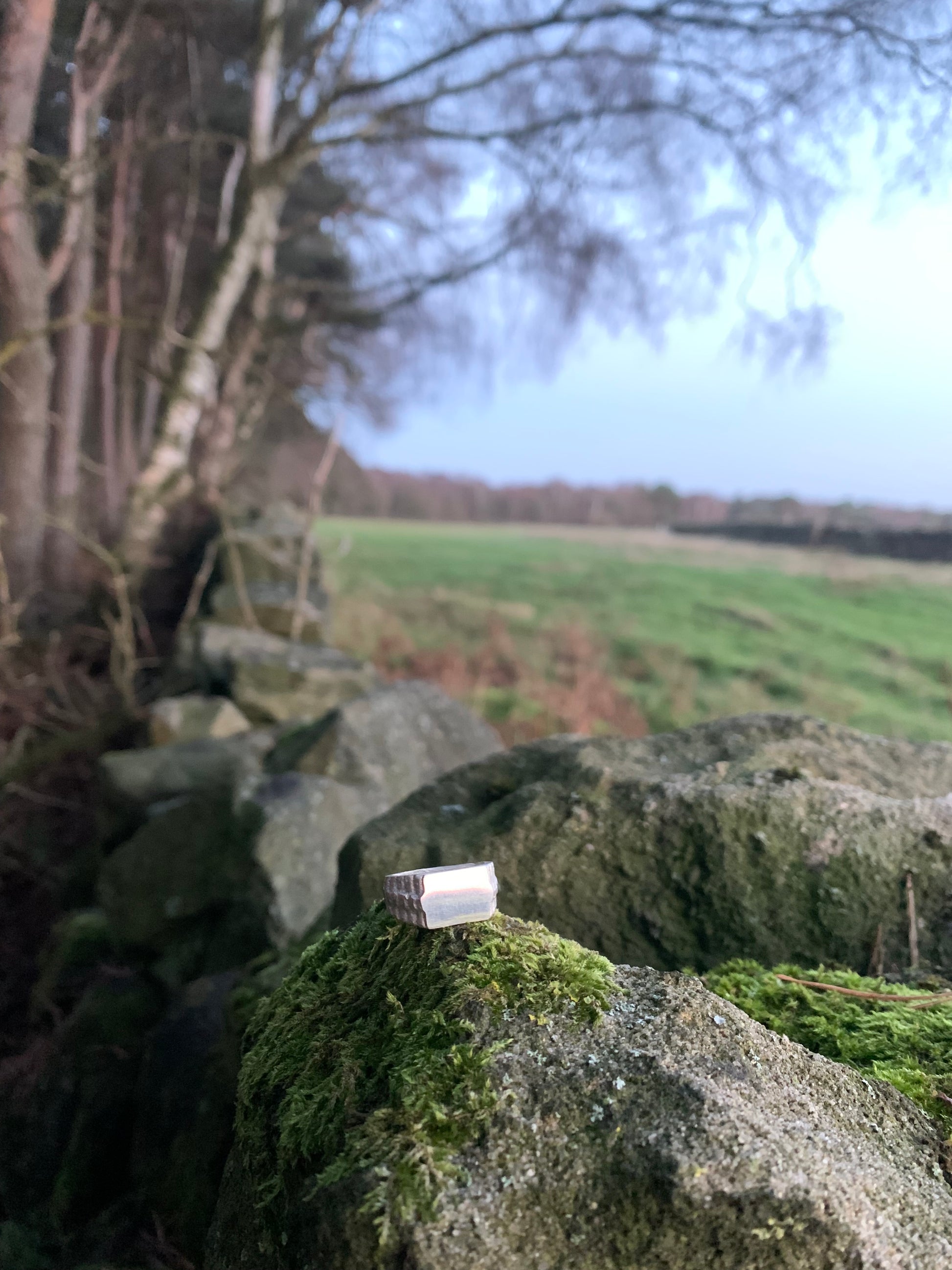 Milling over media of the site we have designed, set and cast using ancient techniques, we have developed the ring around two things, the large flat courtyard and surrounding stones, this Sterling silver ring has over 30 raised notches that sit on the shoulders of the ring, this been a way to represent the abundance of surrounding protection and vastness of the site, this leads up to the head of the piece which is a flat, mirrored face which emulates the openness and depth of the ground they lived. The entire ring is beautifully polished to a mirror like finish bringing a comfortable and modern take on ancient heritage.