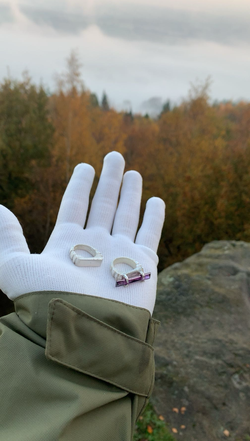 This ring is largely inspired by a Neolithic structure named the devils den, located in Marlborough situated just to the east of the well known Silbury hill and of course Avebury, it it well known for its sharp rigid edges, and it’s unique structure representing a den or shelter spot, it is said to be a long barrow around 3500 BCE and old folklore says at night when the wind is high the stones groan and move.